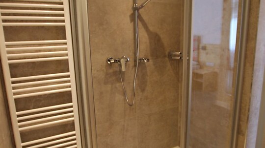 - bathroom with shower and WC, hair dryer